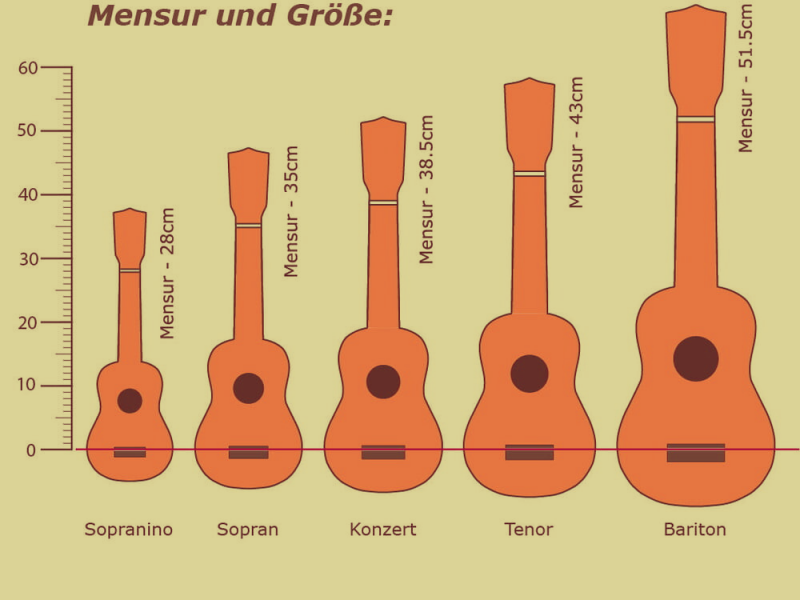 Grossen und Stimmung siehe Video: Ukulelenvergleich